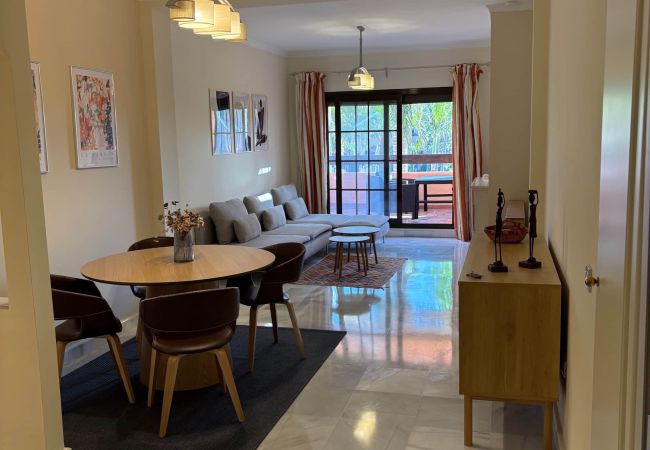 Discover this stunning holiday apartment in the sought-after Hacienda del Sol area, located in Estepona and just 300 meters from the beach. The property is perfectly situated near El Saladillo Beach and San Pedro Beach, offering both relaxation and convenience.